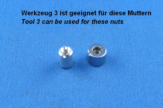 Werkzeug zum Einstellen von Dual Tonarmlagern mit Schlitzmuttern, wie im Bild 2.